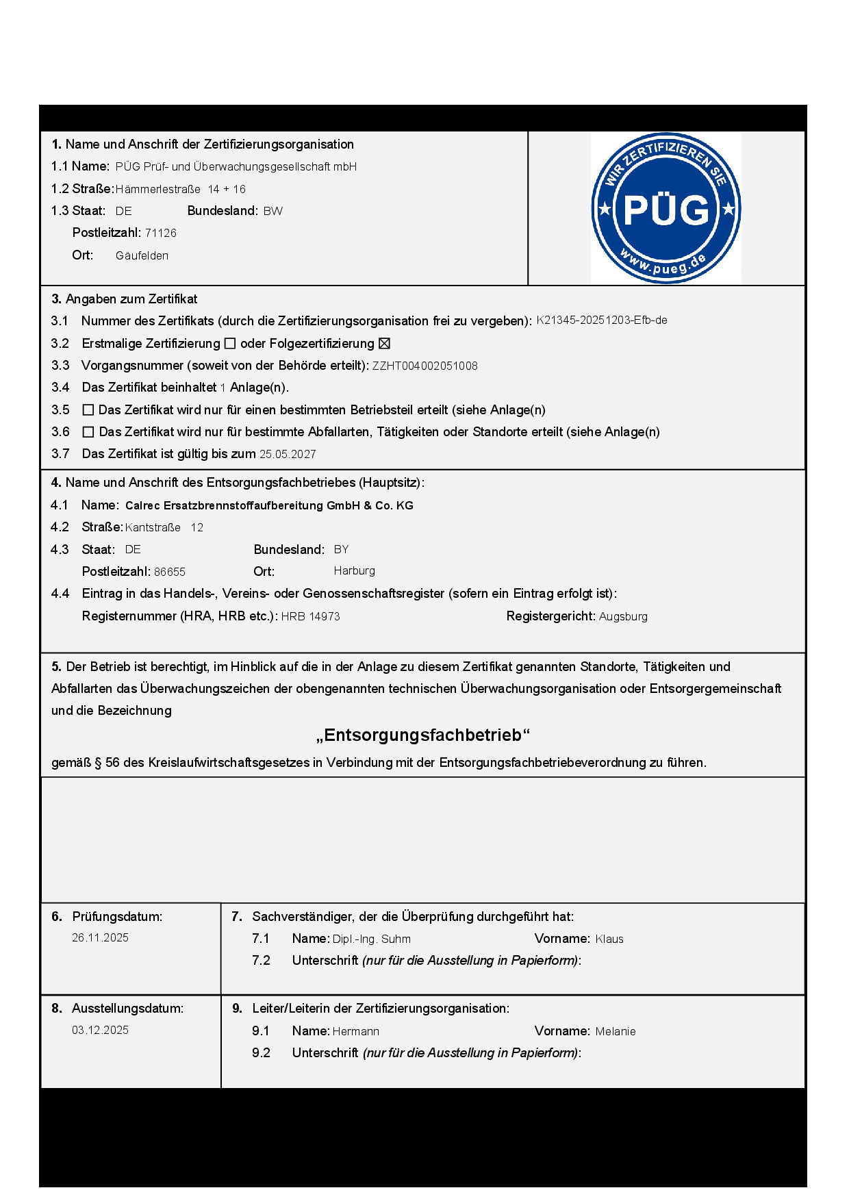 CALREC Ersatzbrennstoff­aufbereitung GmbH & Co. KG