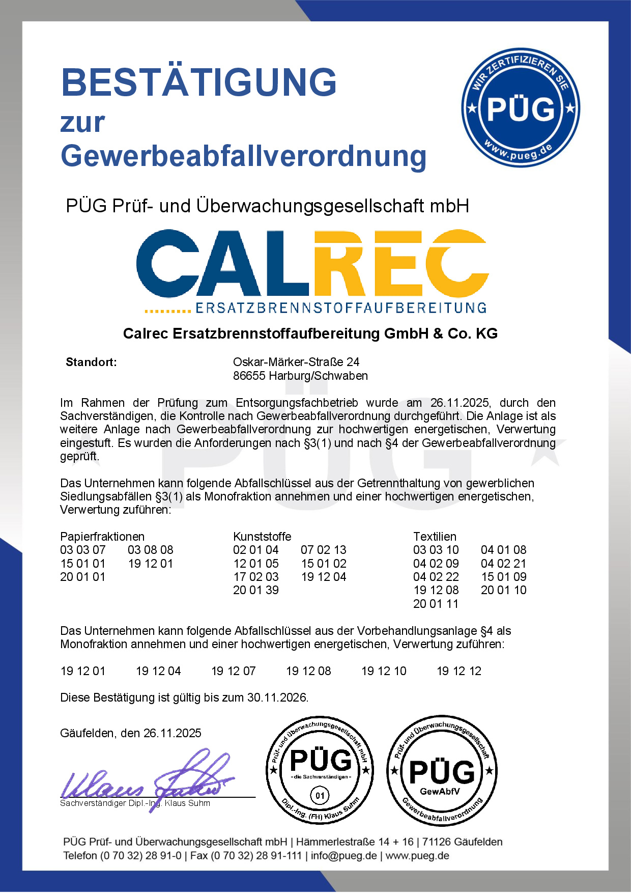 CALREC Ersatzbrennstoff­aufbereitung GmbH & Co. KG